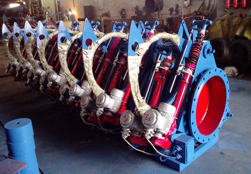 電動推桿扇形盲板閥又名電動推桿扇形眼鏡閥,電動推桿扇形翻板,主要由左閥體、右閥體、閥桿、閘板、密封圈、電動推桿等零件組成,并由底座、支撐柱構(gòu)成一個剛性結(jié)構(gòu)體。密封部位采用不銹鋼與橡膠密封圈,密封性能好,使用壽命長,密封圈設(shè)置閘板上,易于維護時更換密封圈,橡膠密封圈鑲鉗在閘板上。電動推桿盲板閥可以單臺遠(yuǎn)距離控制,亦可多臺聯(lián)網(wǎng)遠(yuǎn)距離控制,非正常情況下還可以利用閥門本身裝置手動操作。